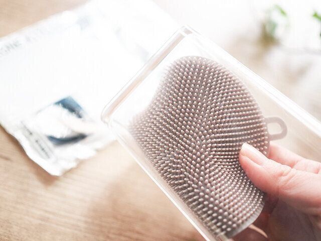 シリコン素材なので洗いにくいコップやボトル底まで形を変えてしっかり洗え、細かい突起が汚れを絡めとってくれます。