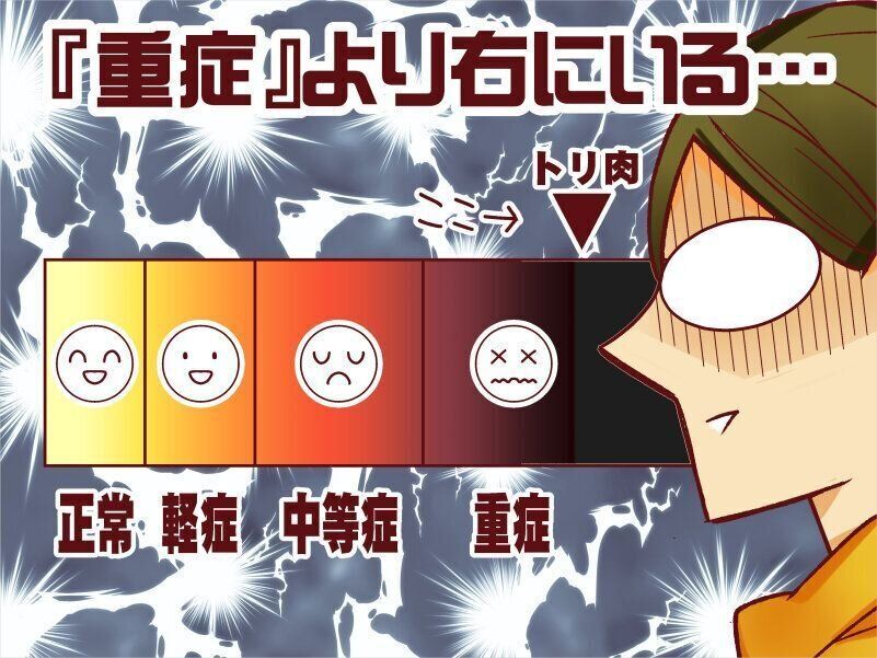 トリ肉は睡眠外来へ行った。最初から行けよ。そこで検査を受けたのだが、検査結果は 問題なし→ □□□□□■■■■(トリ肉)■→死あるのみ という感じであった。死の寸前である。グラフが漫画みたいな図になってて笑ってしまった。こんなことある???ほぼ真っ黒である。笑っている場合ではないので速攻治療対象となった。病院へ行くよう促した私を崇め奉ってほしい。