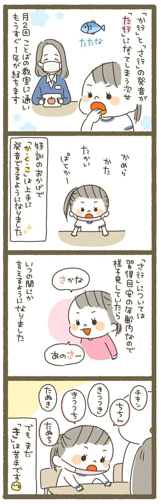 はじめは「か行」が発音できず、さかなも「たたな」になっていた次女でしたが…。