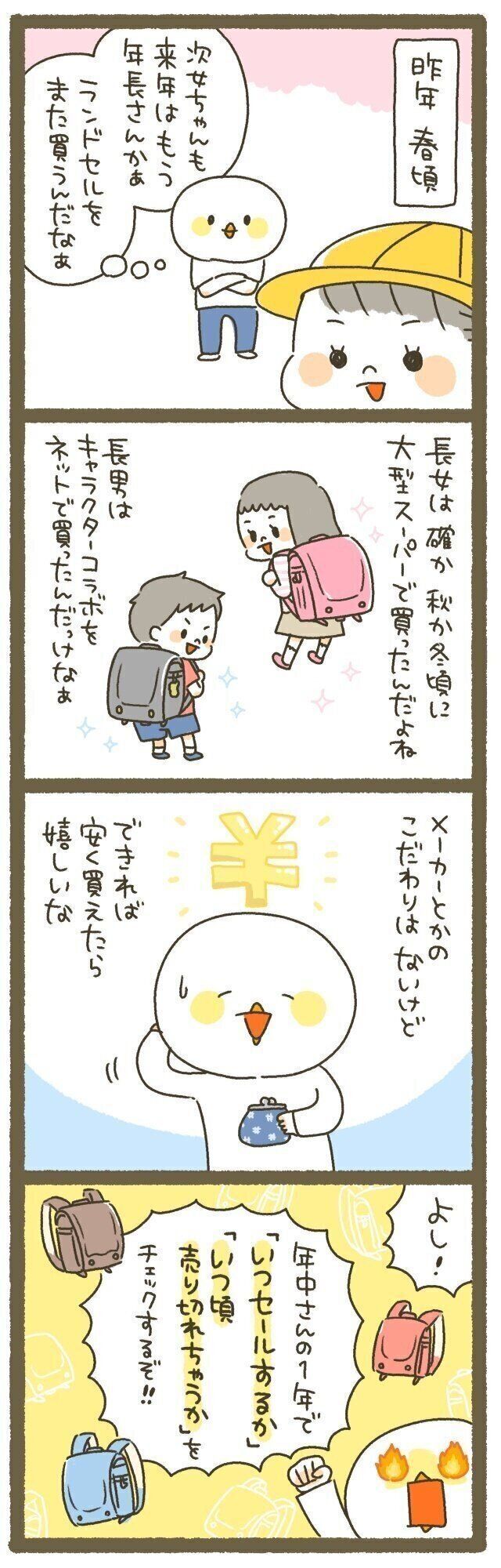 というわけで、ランドセルがいつセールするのかを、年中さんの1年間でしっかりとリサーチしていました!私にしては行動が早いぞ!いぇい♪