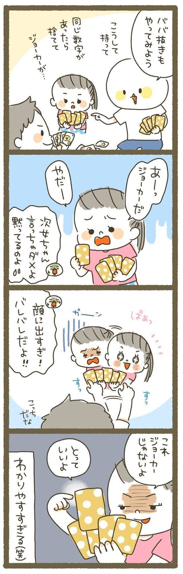 そこでその誘いに乗ってほいほいカードをめくりペアを成立させてしまうと、自分が取りたかったと次女が泣き出し怒ってしまうのです。む、むずかしい。