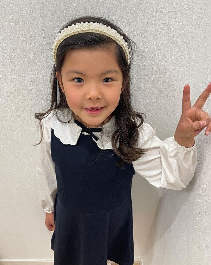 Natsukiさんは、ラインストーンボタン カラード シャツとボタン留めジャンパースカートをZARAで購入。胸元のリボンと襟のかたちが可愛らしいですよね。この日は卒園式だったんだそう。モノトーンカラーでまとめていてとっても素敵!カチューシャもお似合いですよね。