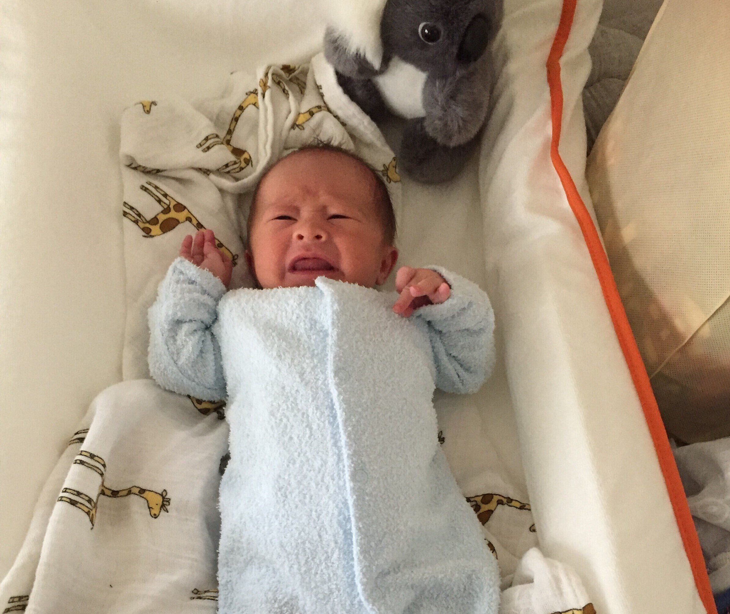 またリッキーくんは、生後10日ごろから眠りがすごく浅くなり、まとめて寝ません。3カ月ごろには、昼夜問わず「やっと寝た」と思っても10分もたたず目を覚ましていました。そして目を覚ました途端、ニコニコ笑います。
