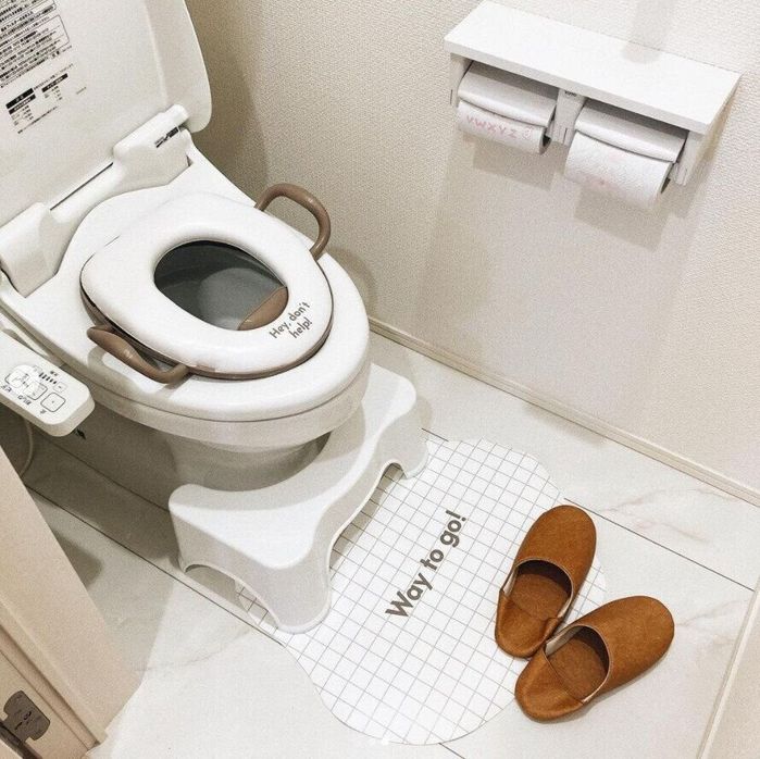 真知子さんは、こちらの「できたが見えるクリアトイレシート」と、足がしっかりつくように高さ25cmの踏み台も購入。補助便座は、お子さんが便器にハマらないほど成長するまでお世話になる予定とのこと。透明なので、上手に用が足せたかどうか、きちんと見えるところも良いですよね。