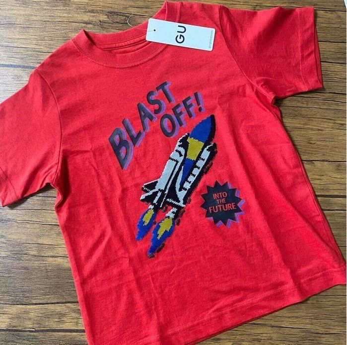 _tat0n_さんは、GU babyで人気のスパンコール付きTシャツを発見!スペースシャトルの部分がスパンコールになっていて、立体感があるのがかわいいですよね。このようにちょっとした仕掛けがついていると子どもも喜んで着てくれそう。真っ赤な色も夏の元気なコーデにぴったり!お値段は790円とプチプラだったそうですよ。