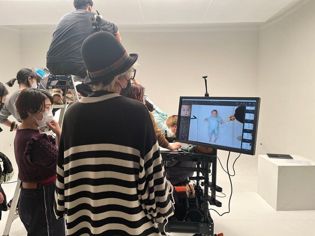千原:撮影中の僕は監督の立場で、空気をよくするのが仕事。今回、モデルの赤ちゃんを抱っこしながら出番まで待つお母さんって、いろんな不安があったと思うんです。急に泣き叫ばないかな、うんちしないかな、とか。少しでもリラックスしてほしくて、お母さんたちには積極的に話しかけていました。