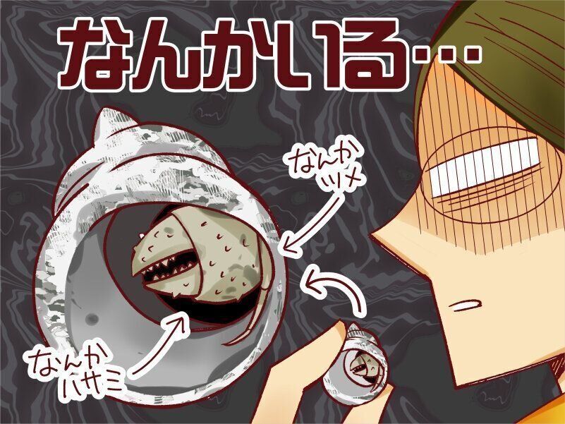 なんかいる!とは…?何かがいるのである。何がいるのだ。どうしたのだと2号のところへ行くと、なんかいるのである。貝の中に。
