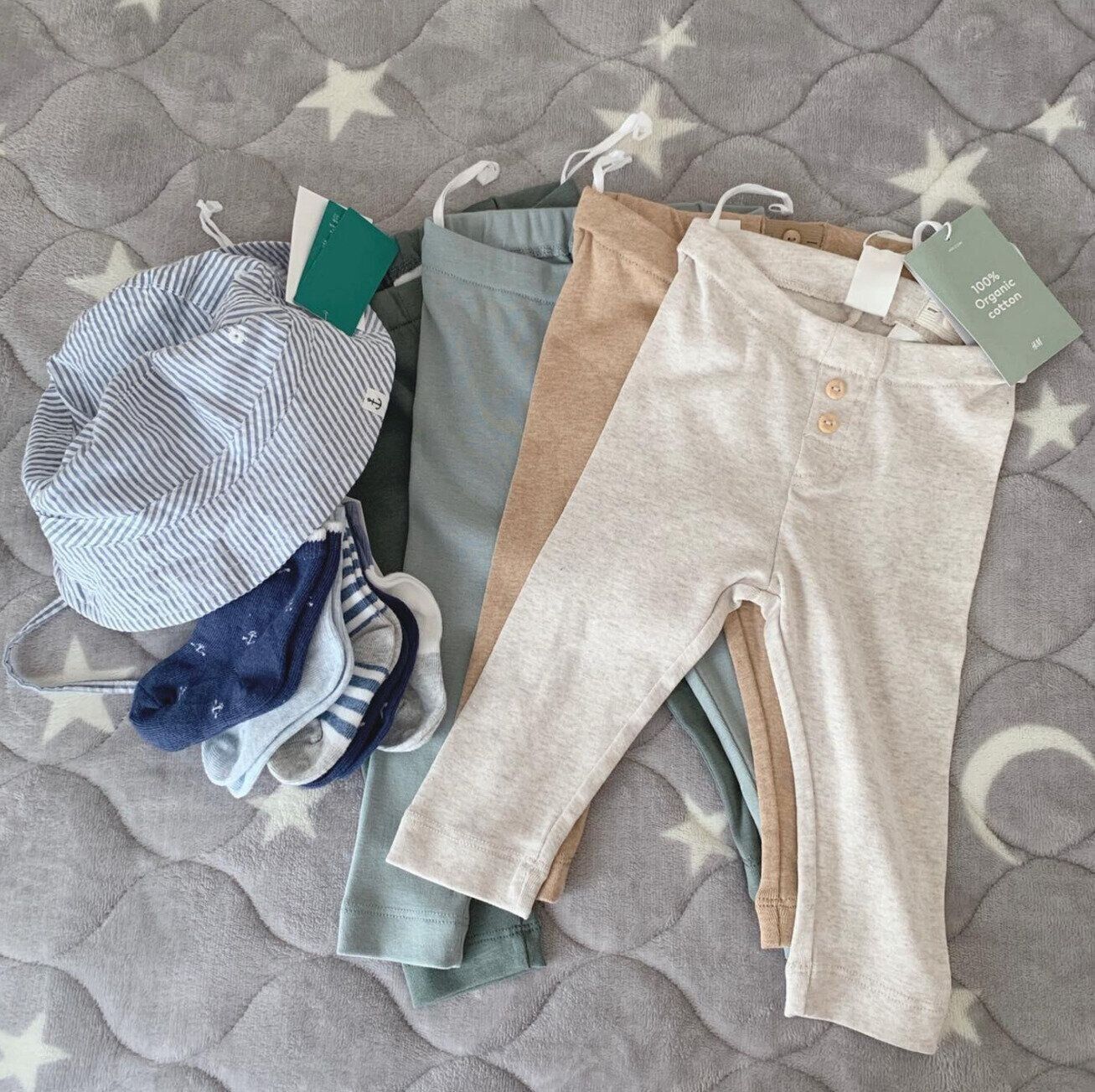 こちらはかにまるさんがH&MセールでGETしたアイテムです。特にオーガニックコットン素材のレギンスはリピートしている商品だそうで、肌ざわりが良いだけでなくウエストをゴムとボタンで調節できるのもポイントだとか!