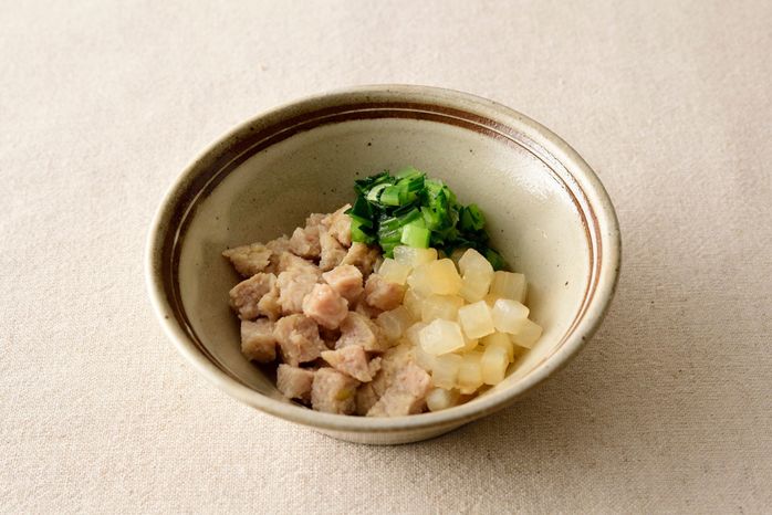 離乳食は薄味が基本です。大人用の味つけをする前に赤ちゃん用の食材を取り分けるか、味がしみ込む前に取り出します。