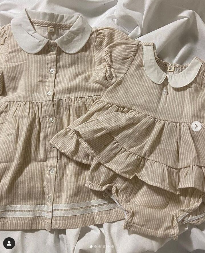 mno2kidsmamさんは、こちらのアイテムを購入。右にあるセットアップだけを購入しようとしたら、偶然にも同じような柄のワンピースを発見し、即決でゲットしたんだとか。姉妹でリンクコーデをするようですよ。コレは可愛らしいですね!