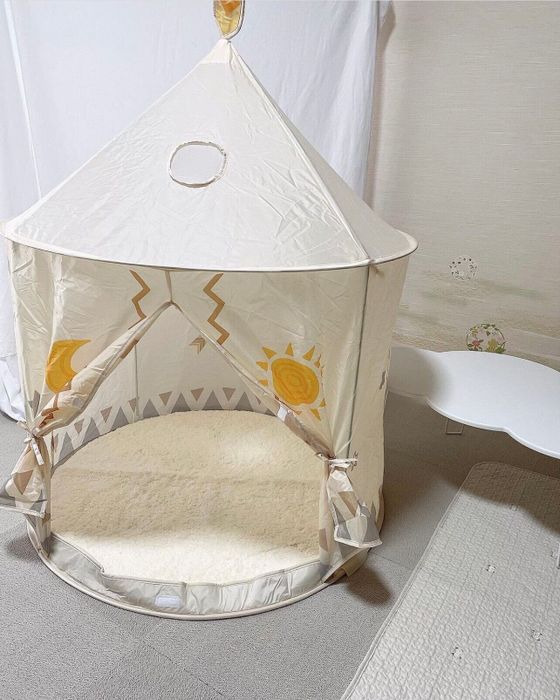 __eripinkxxさんがニトリで見つけたのはキッズテントです。お部屋の雰囲気になじみやすい色味やデザインが購入の決め手になったみたい。同じくニトリでゲットしたラグがテントの中にぴったりだったそうですよ。