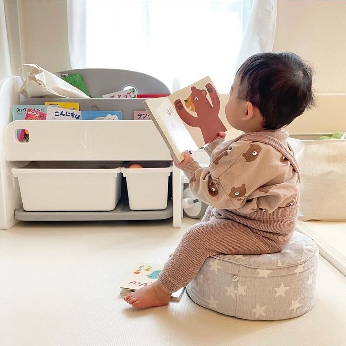 こちらのスツールは__oto.star__さんがニトリで購入したキッズ用のもの。お子さんが座るのにちょうど良さそうな高さとサイズ感ですね。ブックシェルフの色味ともマッチしているうえ、星柄がかわいい♪