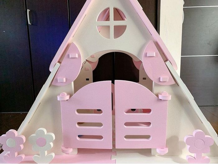 kanaaa.70さんはお子さんの希望で、ニトリのキッズプレイハウスを購入したそうですよ。ピンク×ホワイトの色使いやお花の装飾がとても可愛らしいですね。おうちに子どもだけの秘密基地ができたことで、きょうだいやお友達と楽しく遊べそう!