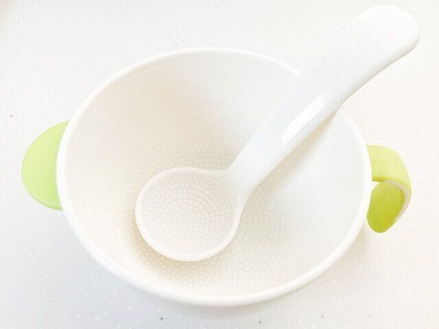 レンジでおかゆが作れる容器が1つあると便利です。10倍がゆ、7倍がゆ、5倍がゆ、それぞれご飯の水の量が違うので、毎回ご飯と水の量を測って作るのがなかなか大変。わが家はリッチェルの「電子レンジ用おかゆクッカー」を使っています。ちなみにお米のすりつぶしはかなり根気がいるので、ブレンダーでパパッとやっちゃいます! ダイソーで買える「おかゆカップ」もありますよ。