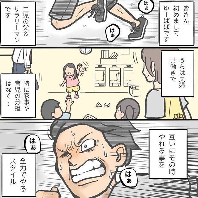 ゆーぱぱ「明確に決まりはなく、お互いが“そのときにできることをやる”というふわっとしたスタンスです。姿勢としては、私の仕事が立て込んで遅くなりそうなときなどは、あらかじめ昼休憩で夕食の支度をしたり(時に宅配)、1日トータルで家事育児の分量を見て妻側に負担が寄りすぎないように意識しています」