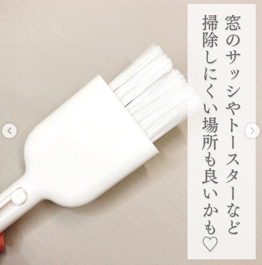 こちらはkiko_saku100さんが購入した、ダイソーの「スタンドブラシ」です。本体についたボタンをスライドすると、硬めのブラシが出てくるそう。必要なときにサッと出せるので、気軽にお掃除ができますね♪