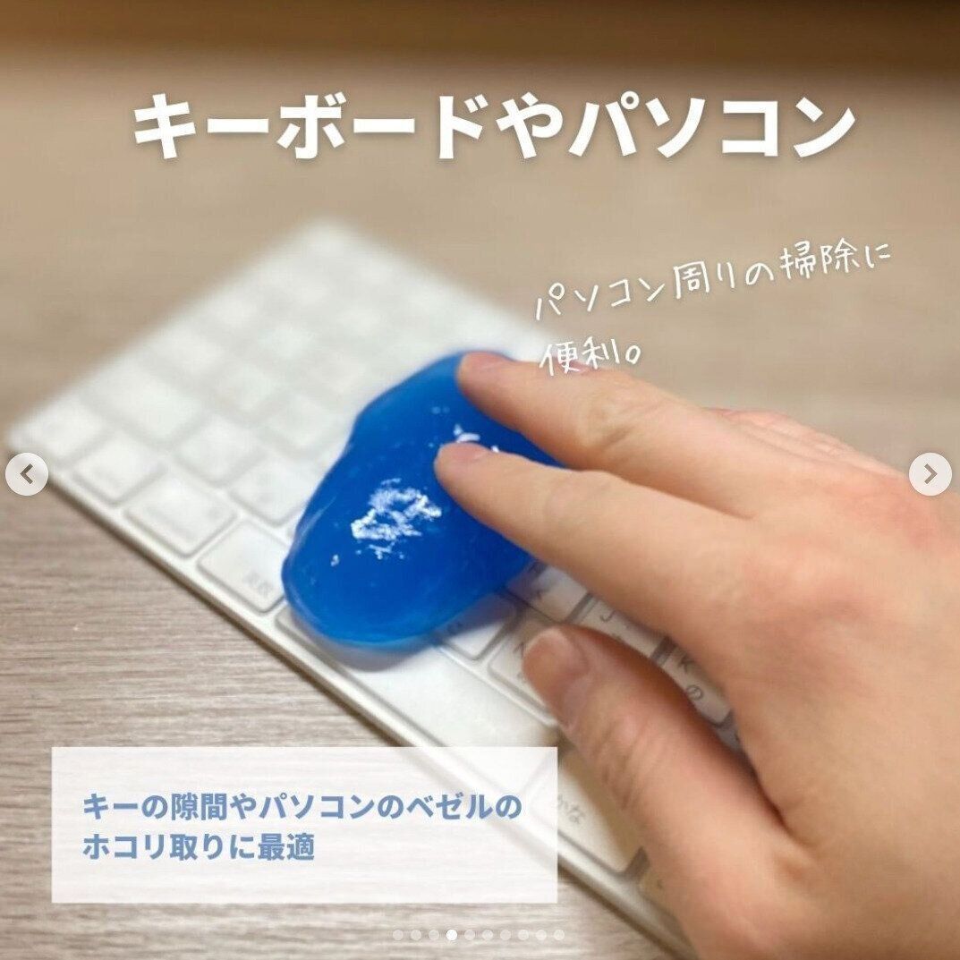 こちらは、aruaru_kurashiさんがダイソーで購入したという「ジェルクリーナー」。キーボードやリモコン、スマホなどの細かいホコリをとることができるそうです♪ 手軽に掃除できるので、キレイを保つことができそうですね!