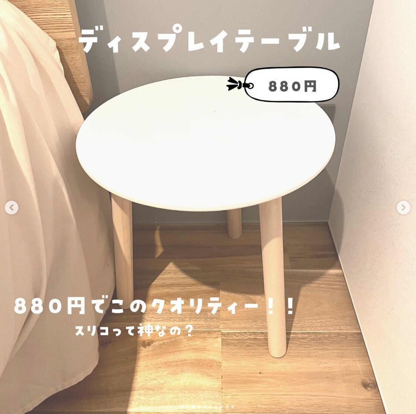juju_home35さんは3COINSでこちらのディスプレイテーブルを即買い!880円で購入したそうですが、クオリティの高さに驚いている様子。白とナチュラルな木目の組み合わせがおしゃれで高見えしてますよね。