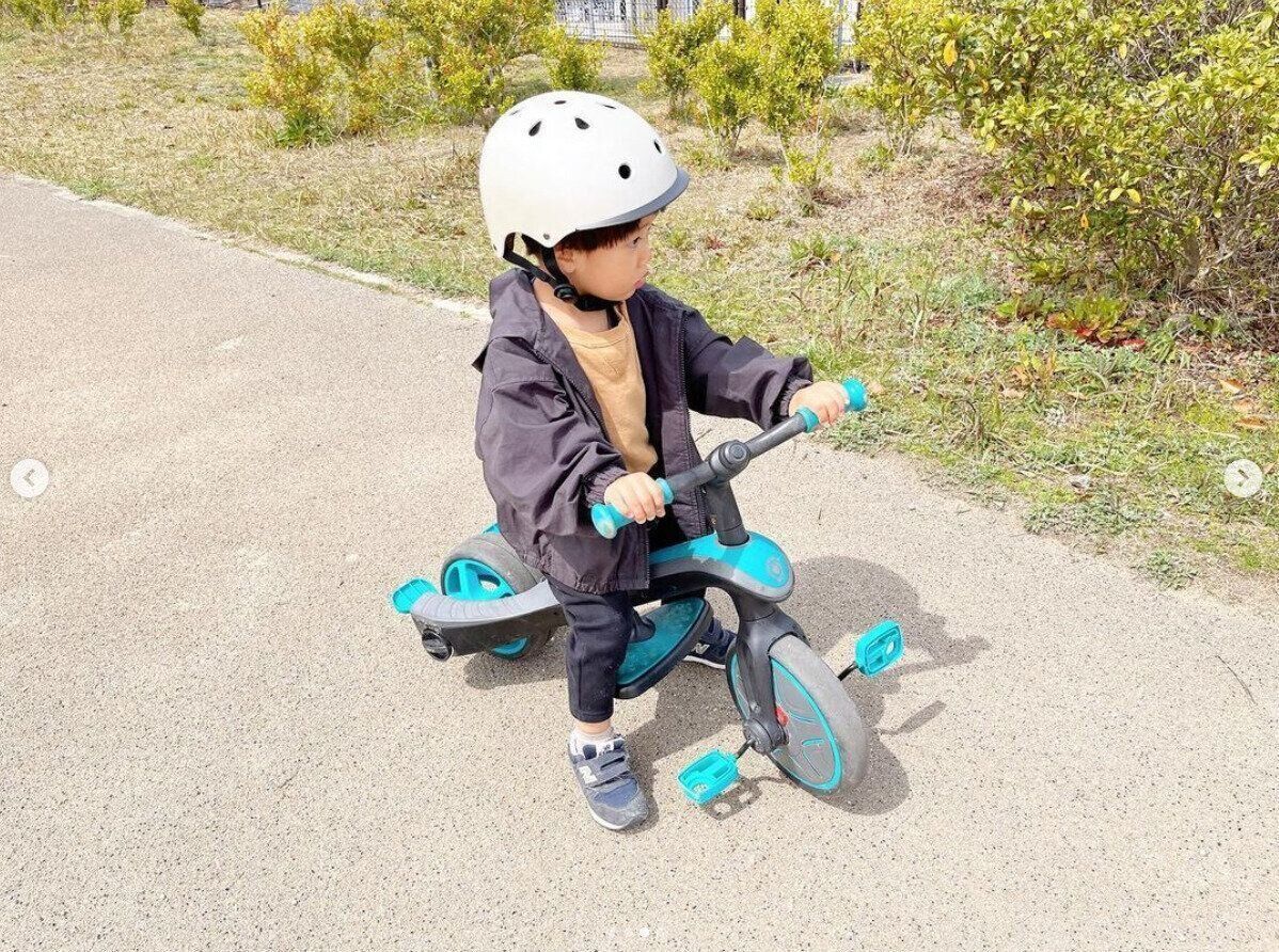 SOSUKE Mam.さんは、GLOBBER(グロッバー)の三輪車をゲット。鮮やかなブルーカラーが可愛らしいですよね。キッズ用ヘルメットのマグライドは、びっくりするほど軽いんだそう。サイズ調整は、頭の後ろにあるダイヤルを回せば簡単にでき、フィット感も抜群とのこと。カッコよくキマってますね!