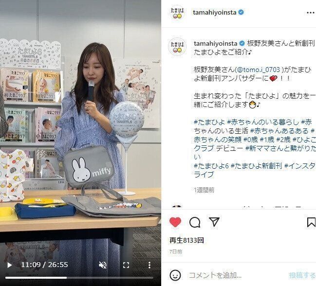 たまひよ新創刊号の発売日だった4月15日、「たまひよ新創刊アンバサダー」として、板野さんがたまひよのインスタライブに登場 ! 新創刊号の魅力を、現役ママ目線でリポートしてくれました。 視聴しているママたちからの質問にも本音で答えてくれています。ぜひcheckしてみてください。