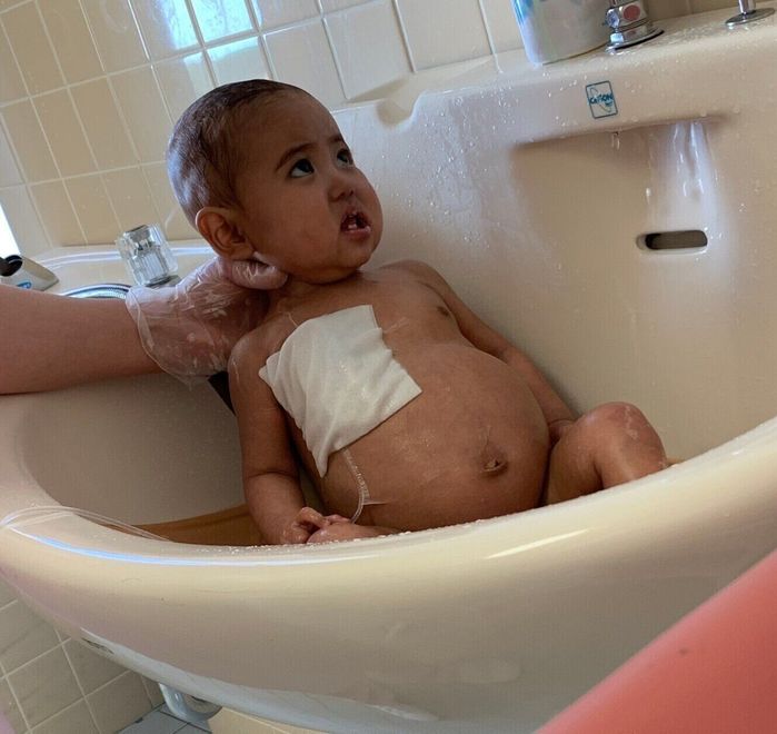 当時の咲葵のおなかのふくらみは、とってもかたかったんです。健康な赤ちゃんのおなかはぽよんぽよんしていますよね。今ならまったく違うことがわかります」(里奈さん)