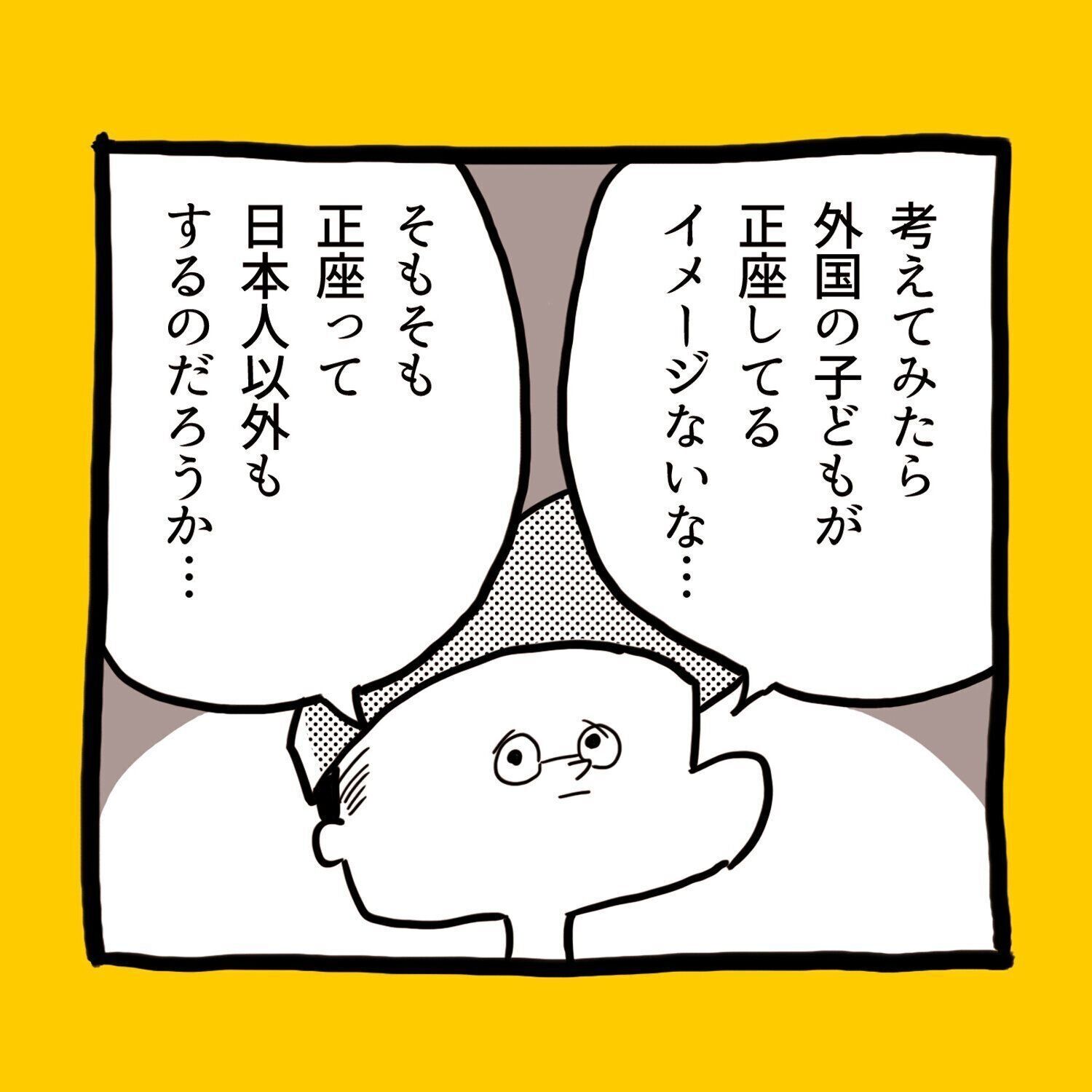 でもなんで大人になったら外国の人たちは正座しなくなるんだろうなぁ。