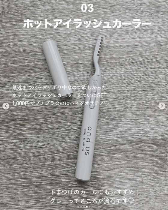 _mailestyle_さんは3COINSでこちらのホットアイラッシュカーラーをゲット。1,100円で購入したそうですが、クオリティの高さやデザインに満足しているようです♪ 下まつげのカールにもおすすめとのこと。