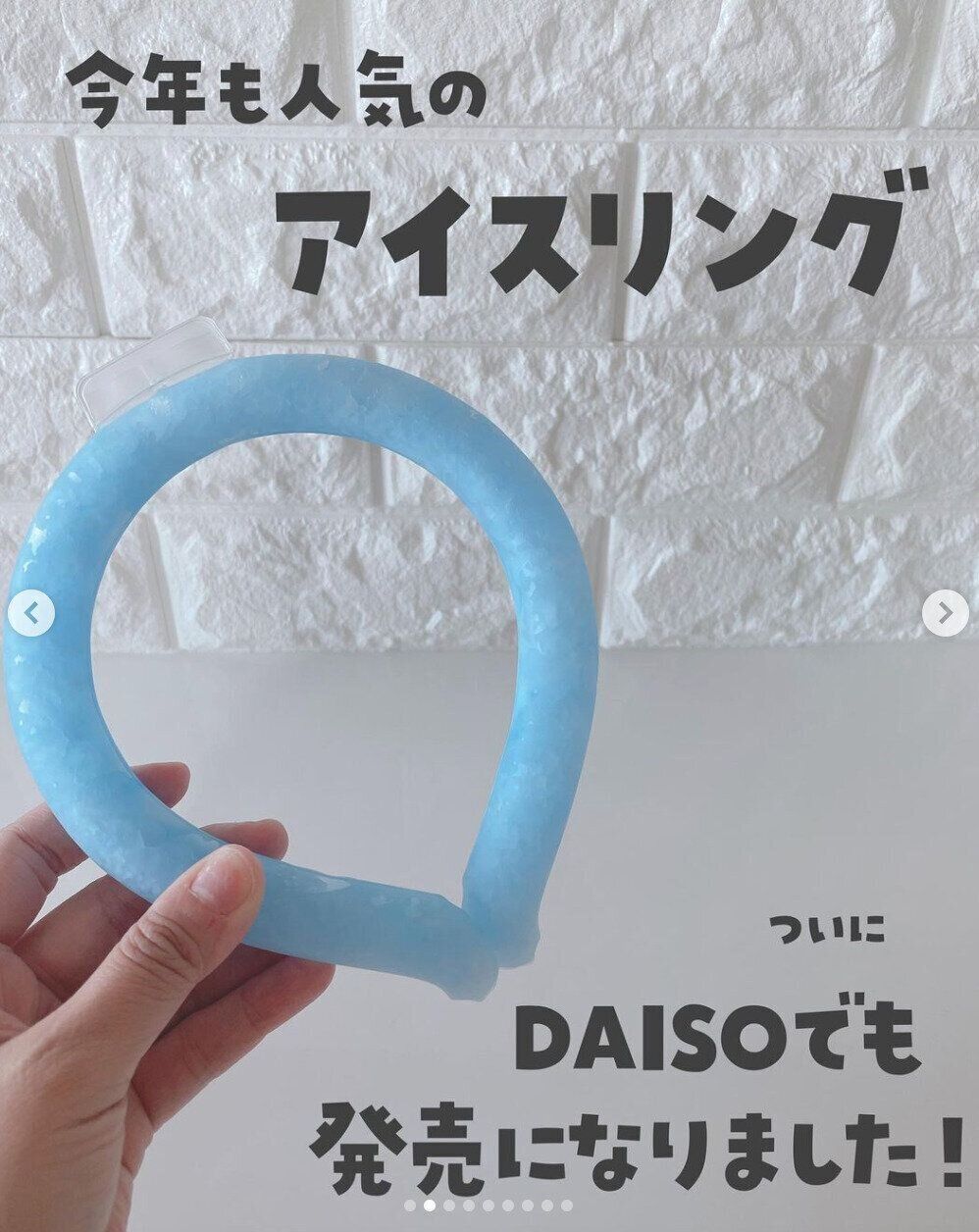 こちらはkiiroiko.instaさんがダイソーで購入した「クールネック」。冷蔵庫や流水で、くり返し凍結させられるそうです♪ 夏の外出時に付けておくと、熱中症対策にもなりますね!こちらは1,100円で販売されているとのこと。