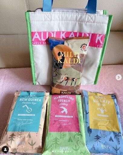 kobahoso.3024さんはカルディの保冷バッグをゲット。コーヒー豆がセットになった「春のコーヒーバッグ」は保冷バッグに入っているのだとか。春らしい色合いで今の季節にぴったりですね。