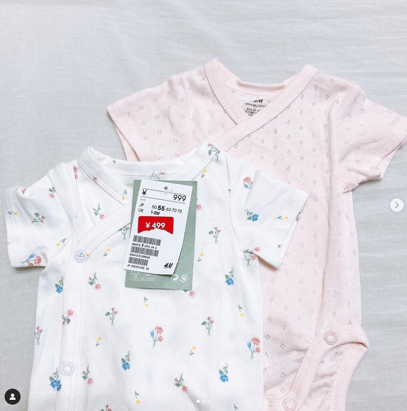 こちらは_ta.mom_さんがGETした新生児用のボディシャツです。999円の商品が499円に値下げされていたそうで、半額で買えちゃうのは嬉しいですよね!H&Mベビーの公式サイトや店頭で割引き情報をチェックするのが良さそうです。