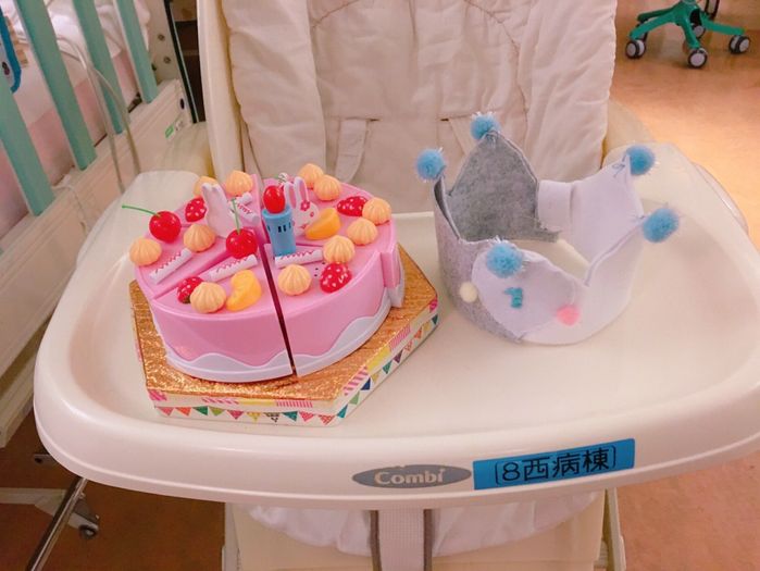 1才のお誕生日は病院で迎えましたが、病室でにぎやかにお祝いしたそうです。