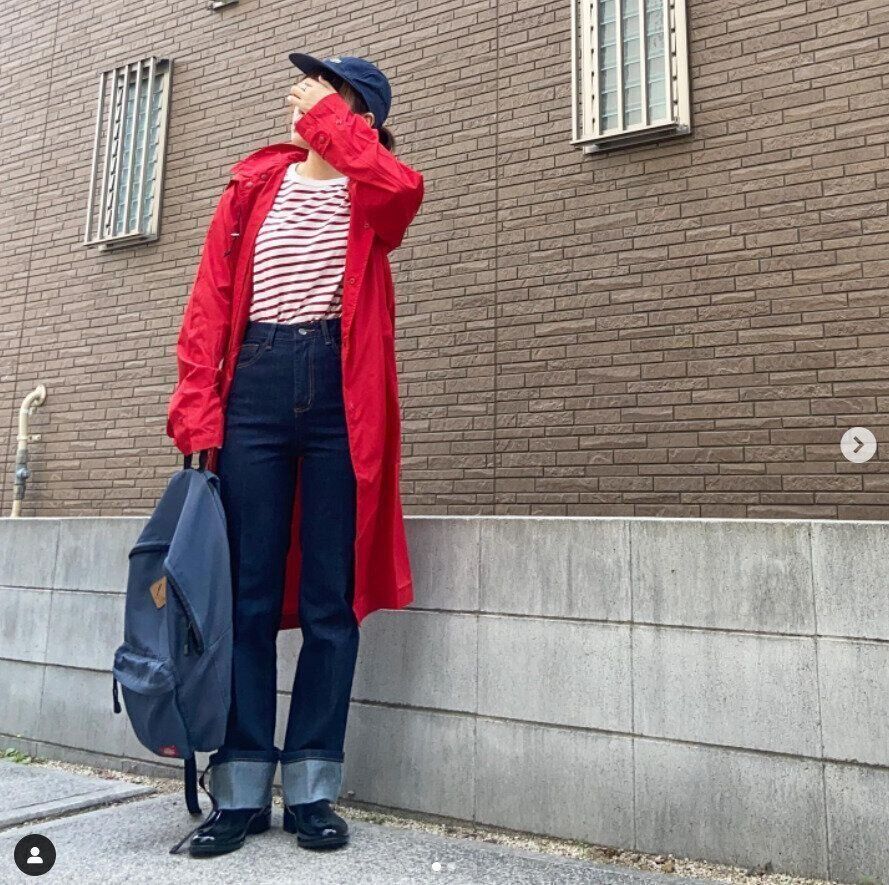 youkiさんは、Traditional Weatherwear(トラディショナルウェザーウェア)のレインコートとレインシューズを購入。しっとりした素材でシャカシャカしないタイプのレインコートなんだそう。赤と紺色の組み合わせがオシャレですよね。
