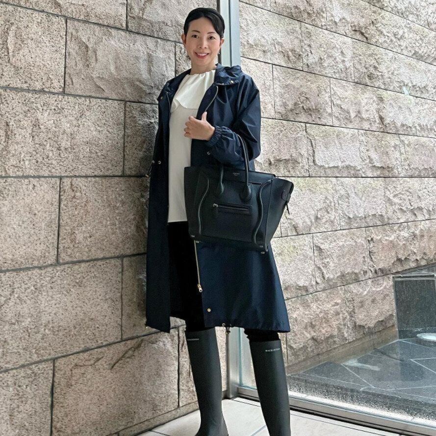 yoriのレインコートとテンパレイトのレインシューズ!品のある雨の日コーデ