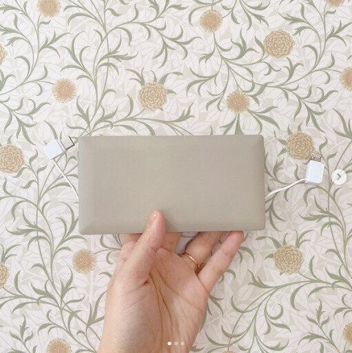 nanaさんが購入したのはシンプルなベージュのモバイルバッテリー。ケーブルが内蔵されていて、本体も薄いのでバッグにも入れやすく使いやすいのだとか。見た目もおしゃれなモバイルバッテリーですね。