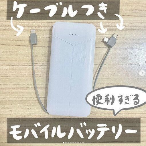 わをんさんはAmazonでモバイルバッテリーを購入。ケーブルだけでなく、コンセントプラグもついているのでコンセントに直接挿して充電することができるのだとか。ケーブルをいくつも使わないのが便利そうですね。