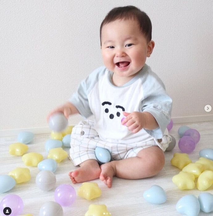 MugiさんはこちらのTシャツをGET!こちらのお宅では子どもだけでなく大人もシナぷしゅが気に入っているそうで、シナぷしゅグッズを集めているそうです。爽やかなブルーのシャツにぷしゅぷしゅの表情がプリントされていてとても可愛いですね♪