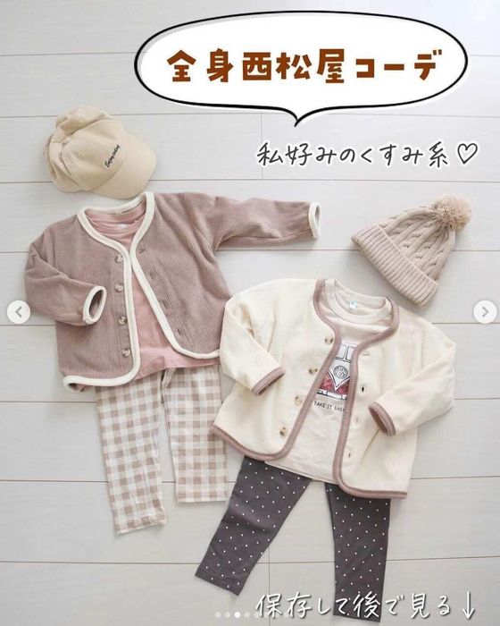 こちらはyuri.mama71さんの西松屋全身コーデで、どちらもプチプラとは思えないですよね!今回のコーデに使ったキャップは879円(税抜)、ニット帽は479円(税抜)とのこと。くすみ系カラーの重ね着や小物づかいで一気におしゃれ度がアップしますね♪