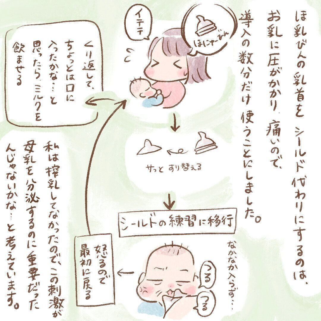 さて、ニップルシールド単体がなかなかうまくいかないので、哺乳びんの乳首を利用しどうにか吸ってもらおうと画策しているところです。