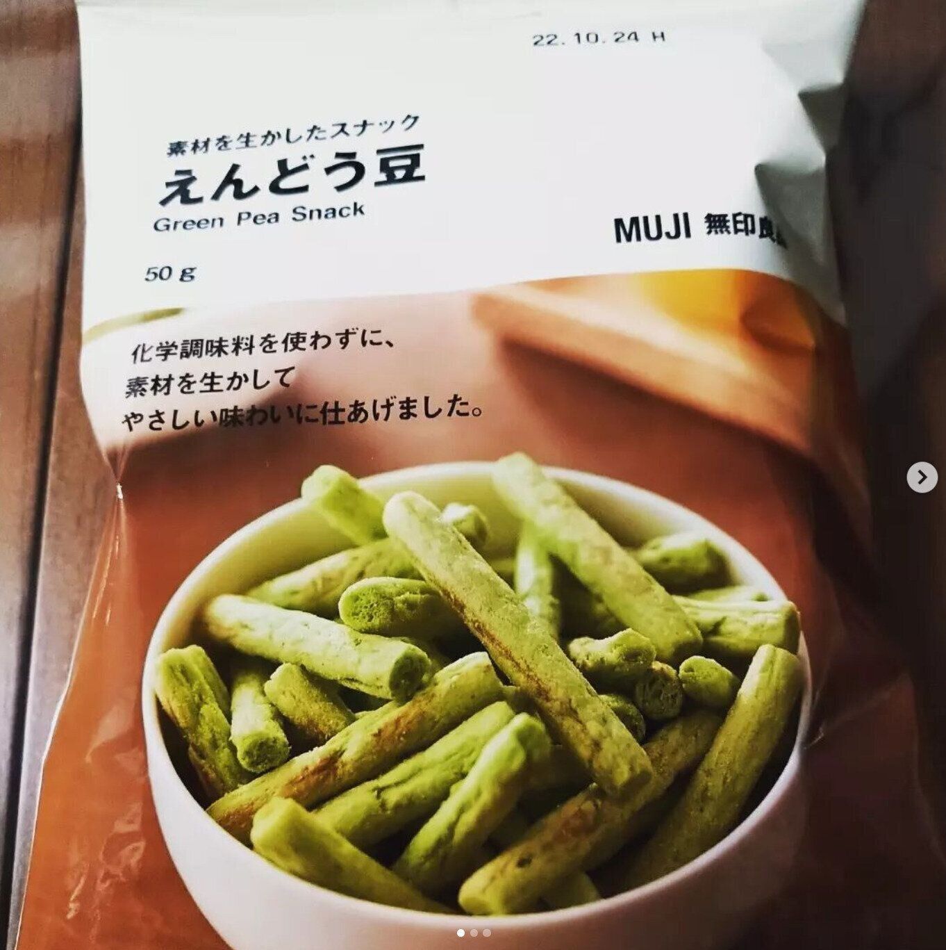 こちらはmutenkashirabeさんが無印良品で購入した「素材を生かしたスナック えんどう豆」。化学調味料を使用していないので、お子さんのおやつにもよさそうとのこと♪ 味もおいしいと満足のようです。