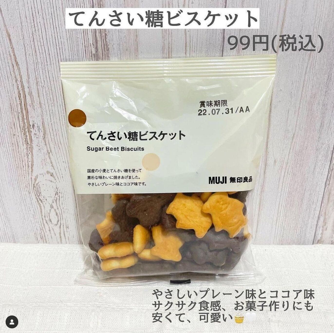 _omi03110802さんが無印良品でゲットしたのはこちらの「てんさい糖ビスケット」。プレーンとココアの2つの味が楽しめるようです。そのまま食べてもおいしそうですが、見た目がかわいいのでお菓子作りにも使えるとのこと◎
