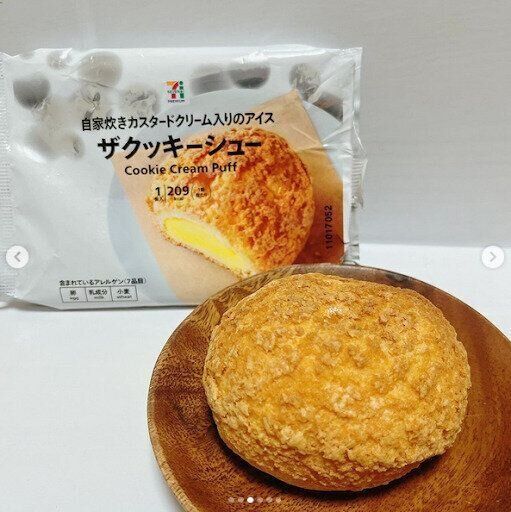 ミキアイスさんがセブンイレブンで購入したのは「ザクッキーシュー」。バター香るシュー皮は軽めの口当たりでザクっとした食感があり、中のカスタードアイスは卵のコクが感じられおいしかったそう。オーブントースターで温めるとさらにザックとした食感が楽しめるようです。
