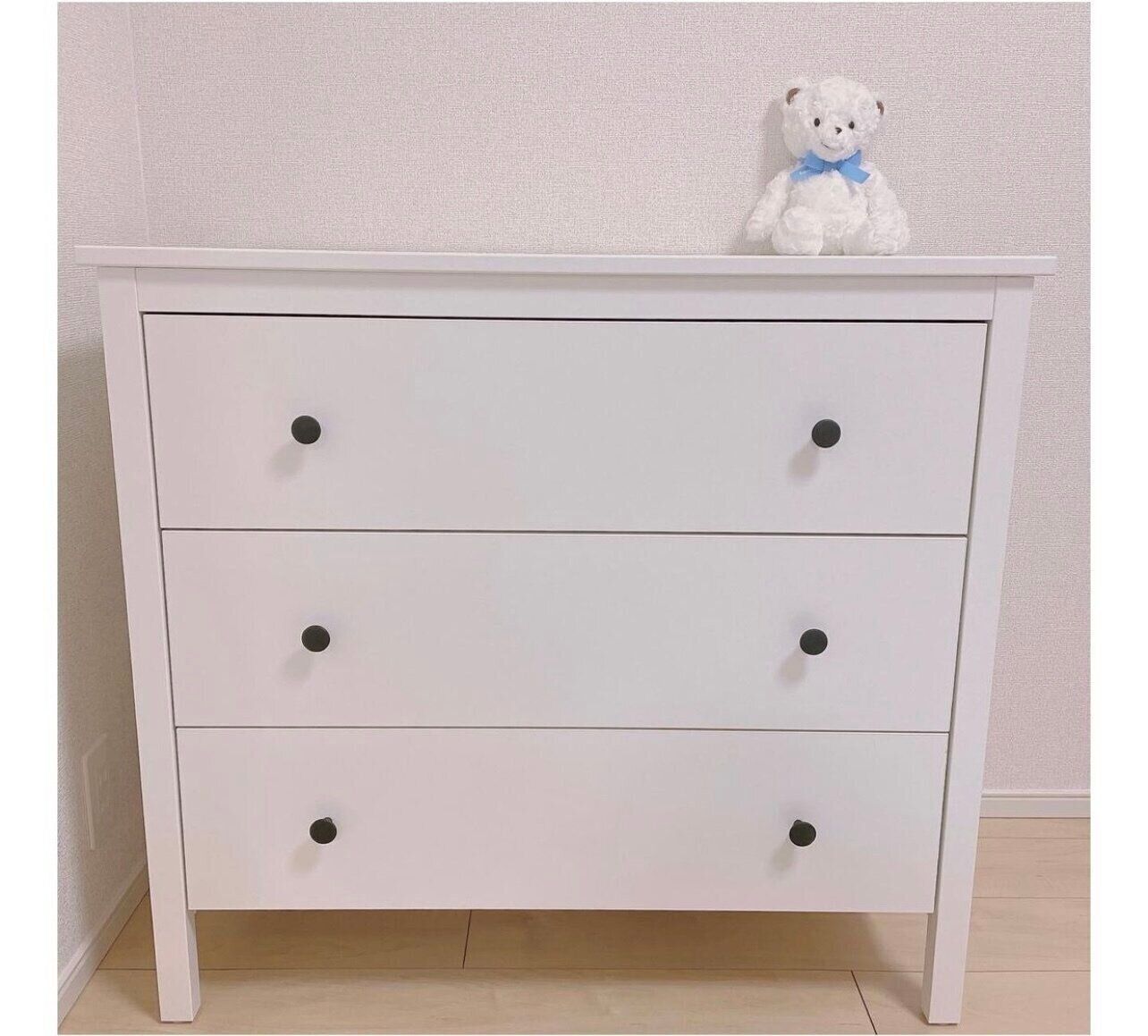 ___mbaby2022さんはIKEAで購入したチェスト「KOPPANG(コッパン)」にベビー服を収納しているそうですよ。ホワイト基調に取っ手のブラックがアクセントになっていて素敵ですよね。お子さんが大きくなっても使えそうなものを選んだみたいです。