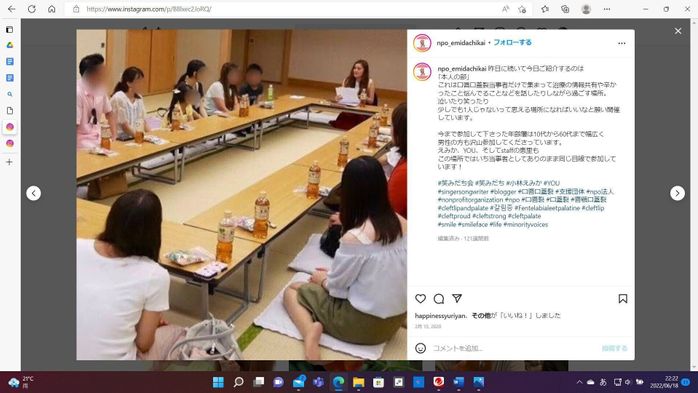 口唇口蓋裂という病気は、悩みや不安を一人で抱え込みやすいので、同じ病気を抱える方々に横のつながりや友だちをつくってもらいたいと思っていました。