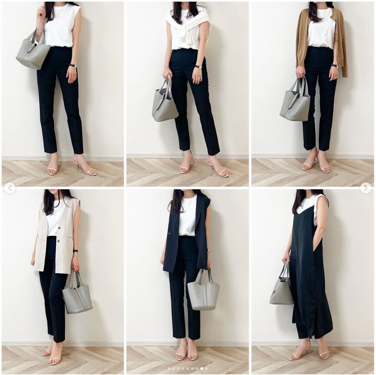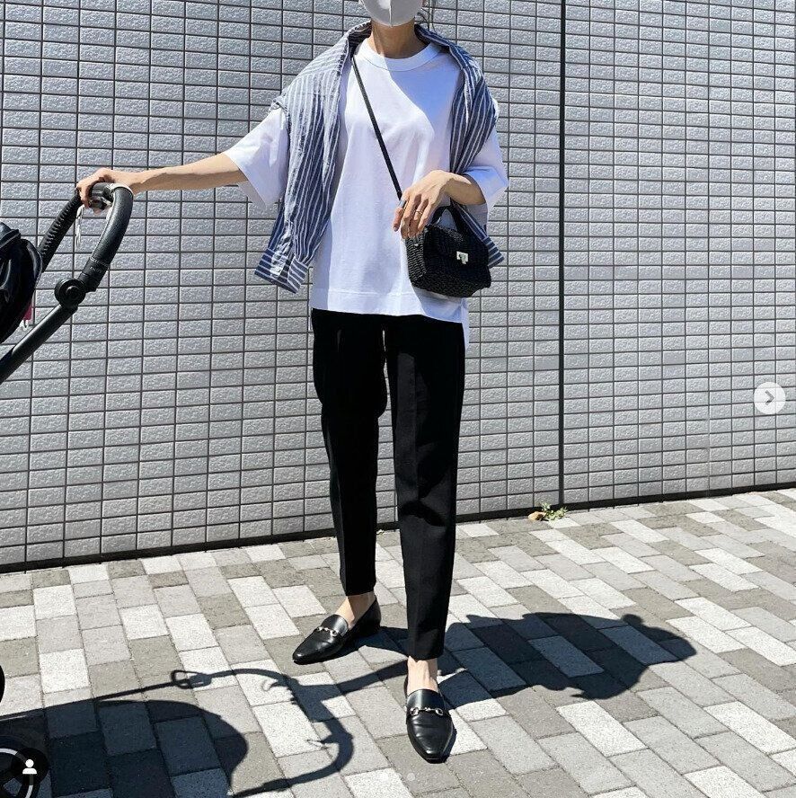 ユニクロ「夏でも軽やか」「着回し力抜群」ママのきれいめモノトーンコーデ