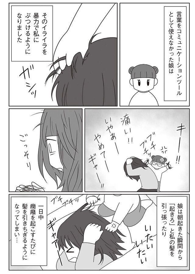 古都コト子「24時間続く癇癪と暴力、一瞬でも目が離せないところです。特に2歳ごろは言葉をコミュニケーションツールとして使えなかったので、家での癇癪と暴力が激しかったです。髪を引きちぎられたり、噛み付かれたり、引っ掻いたり物を投げられたりしていました。大変すぎて当時の記憶が曖昧です」