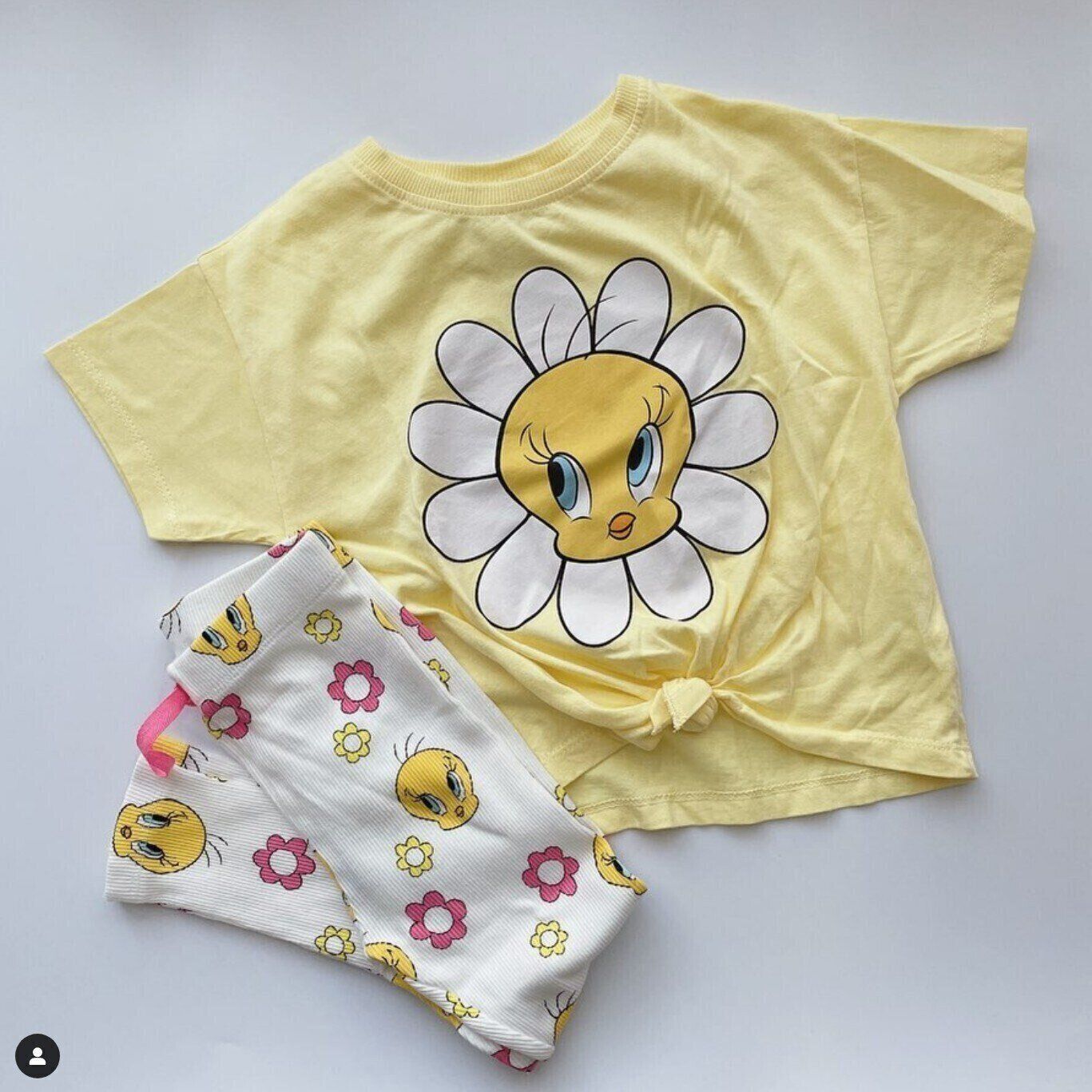 han__chan__さんはZARAキッズ・ベビーアイテムで全身コーデ♪ 人気キャラ「トゥイーティー」のイメージ通り、明るくてポップな雰囲気がとてもおしゃれですよね。ぜひセットアップで着たいアイテムですね!