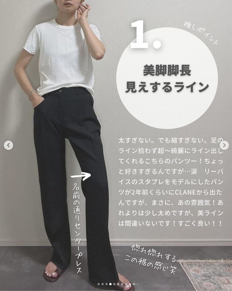 kk____fashionさんは、こちらのセンタープレスストレートパンツRSを購入。足のラインを出したくない、でもワイドタイプにちょっと飽きたという方におすすめのパンツなんだそう。スラッとした縦長ラインでキレイなパンツですよね。脚長効果もバッチリです♪