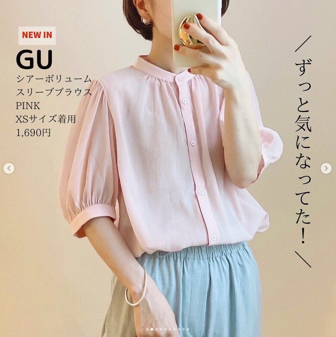 cahoさんは、こちらのシアーボリュームスリーブブラウス(1,690円)を購入。生地が柔らかく、着心地も良いんだそう。シアー感が薄すぎないので大人も気軽に楽しめるアイテムですよね。5分袖なので、二の腕~ヒジまでバッチリカバーしてくれるメリットも!大人っぽい雰囲気の可愛らしいブラウスですよね。