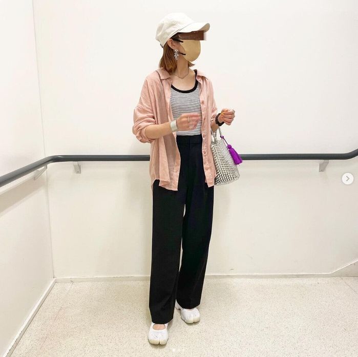 co_co_nanaさんは、タックワイドパンツを購入。身長163cmでMサイズを履いているんだとか。Sサイズを試着してみたら、シルエットは綺麗だったけど、丈がちょっと足りなかったんだそう。Lサイズはベルトが必須で、ゆるっと履いても可愛くておすすめとのこと。脚長効果もバッチリですね!