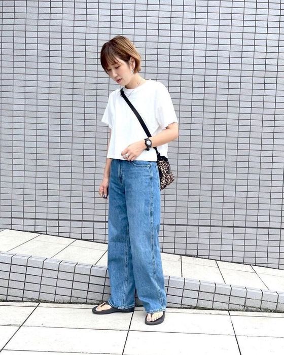 白Tとバギージーンズのシンプルで爽やかなコーデ